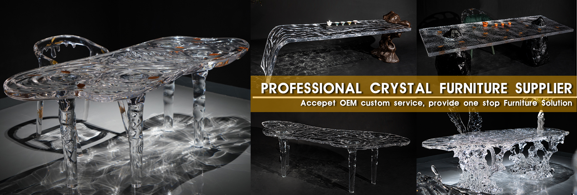 TT OEM personalizado forma irregular Villa Hotel Villa al aire libre glaciar líquido cascada acrílico transparente mesa de té