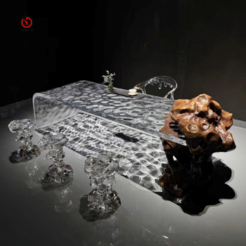 Tt oem מותאם אישית צורה סדירה וילה מלון וילה קרחונים חיצונית מפל נוזלי שקוף שולחן תה אקרילי